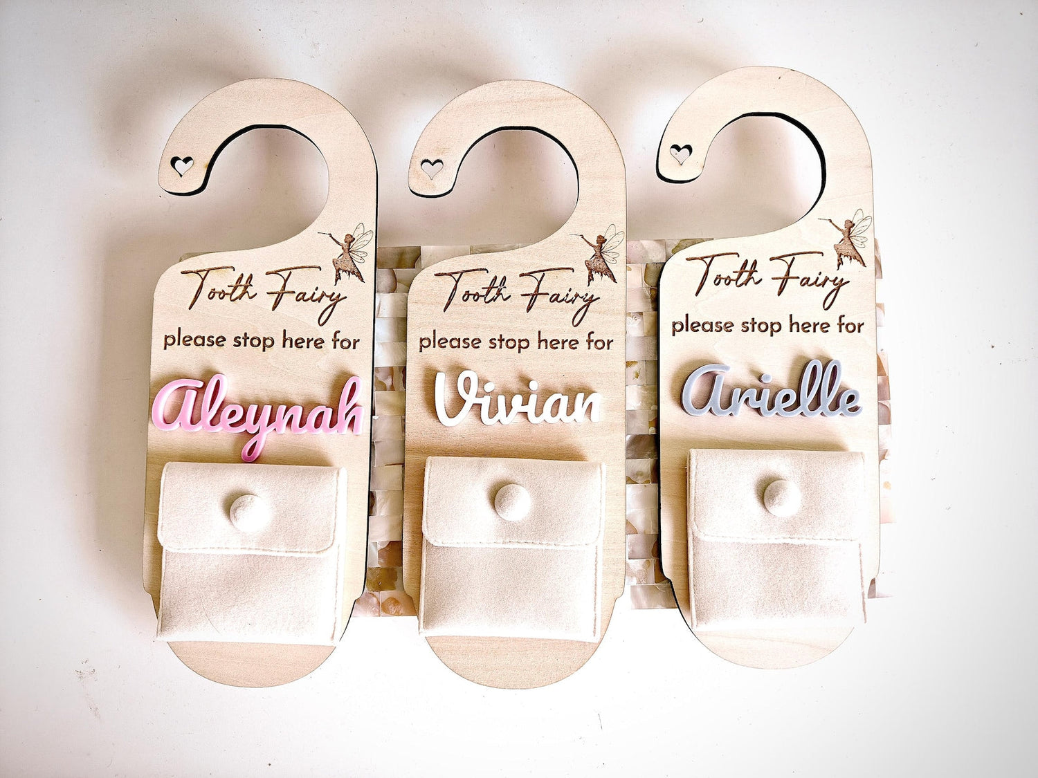 Tooth Fairy Door Hanger Personalised | Personalised Tooth Fairy Trinket - custom fonts