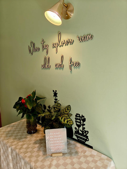 LARGE wooden wall script art | Where the wild ones play LARGE wooden wall script art | Where tiny explorers roam wild and free