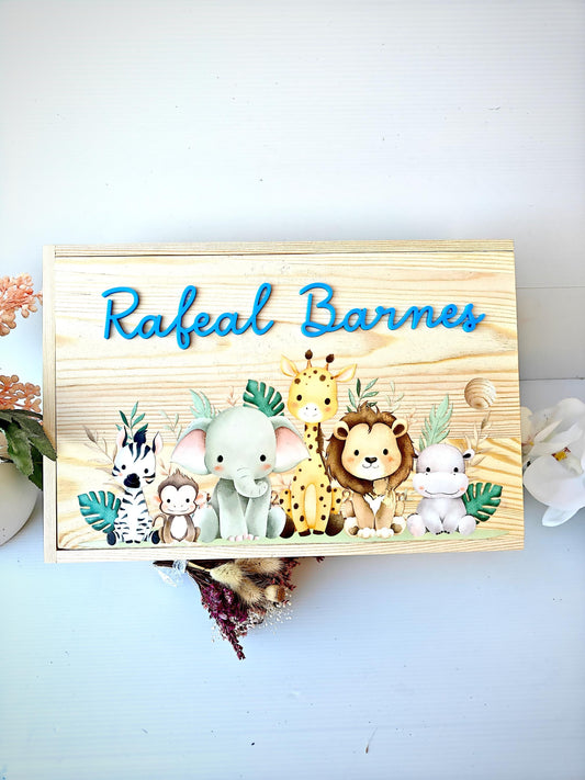 Personalised Animal Baby Keepsake Box, Wooden Memory Box for Newborn, Custom Engraved Baby Gift