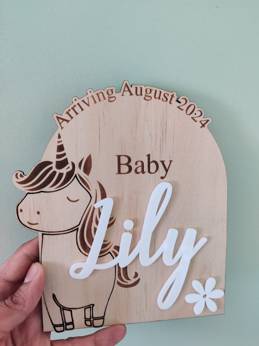 Pregnancy Announcement Plaque with Acrylic Name and floral design