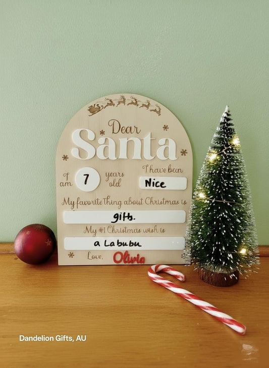 Reusable Dear Santa Letter Christmas Wish White Board Wood Acrylic
