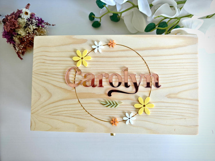 Personalised Baby Keepsake Box | Wooden Memory Box for Newborns | Daisy Keepsake